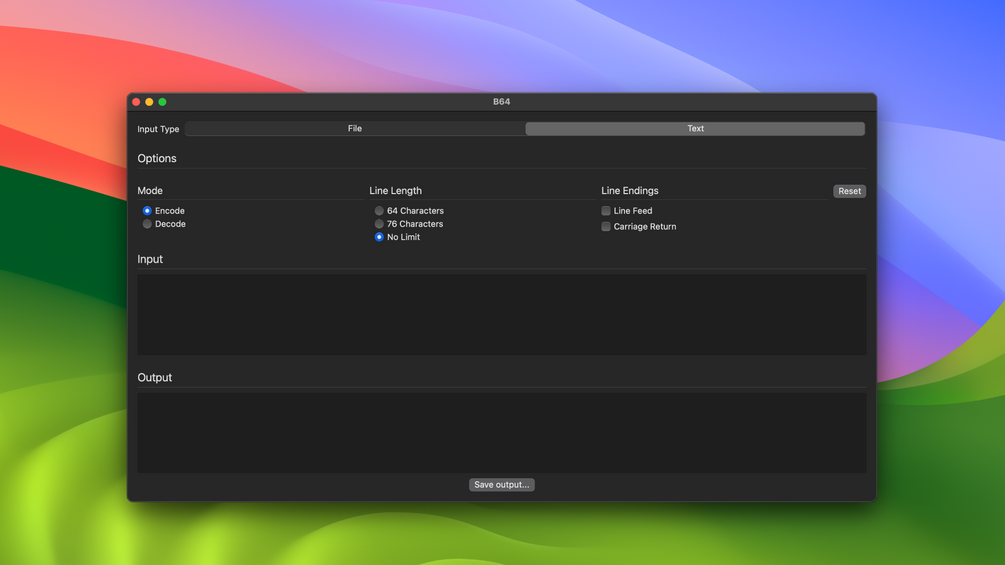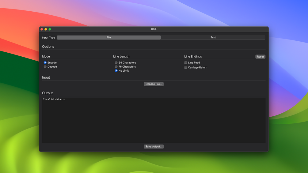 B64 is a super easy way to convert files or text into or from base 64 text.